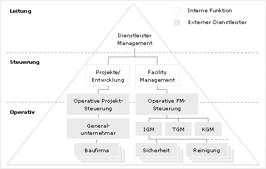 Durch die vollverantwortliche Übertragung immobilienwirtschaftlicher Funktionen an externe Dienstleister (Outsourcing) kann außerdem eine Verringerung der Leistungstiefe und eine stärkere Ausrichtung auf das Kerngeschäft erreicht werden. Dies gilt für die nicht zum Kerngeschäft zählenden operativen Aufgaben des Immobilienmanagements in praktisch unbegrenztem Umfang.